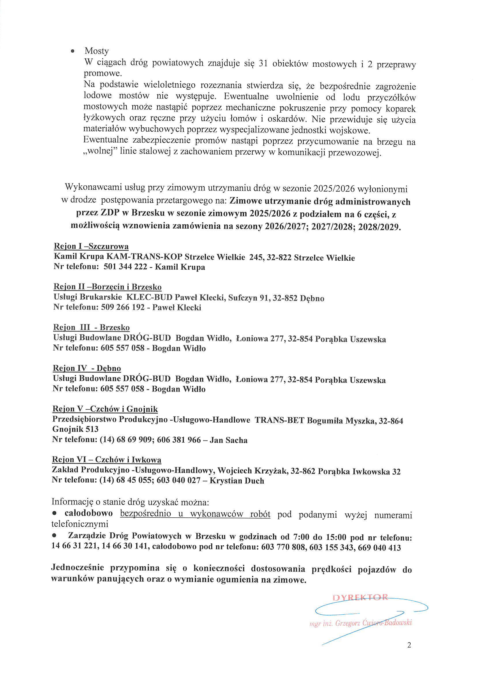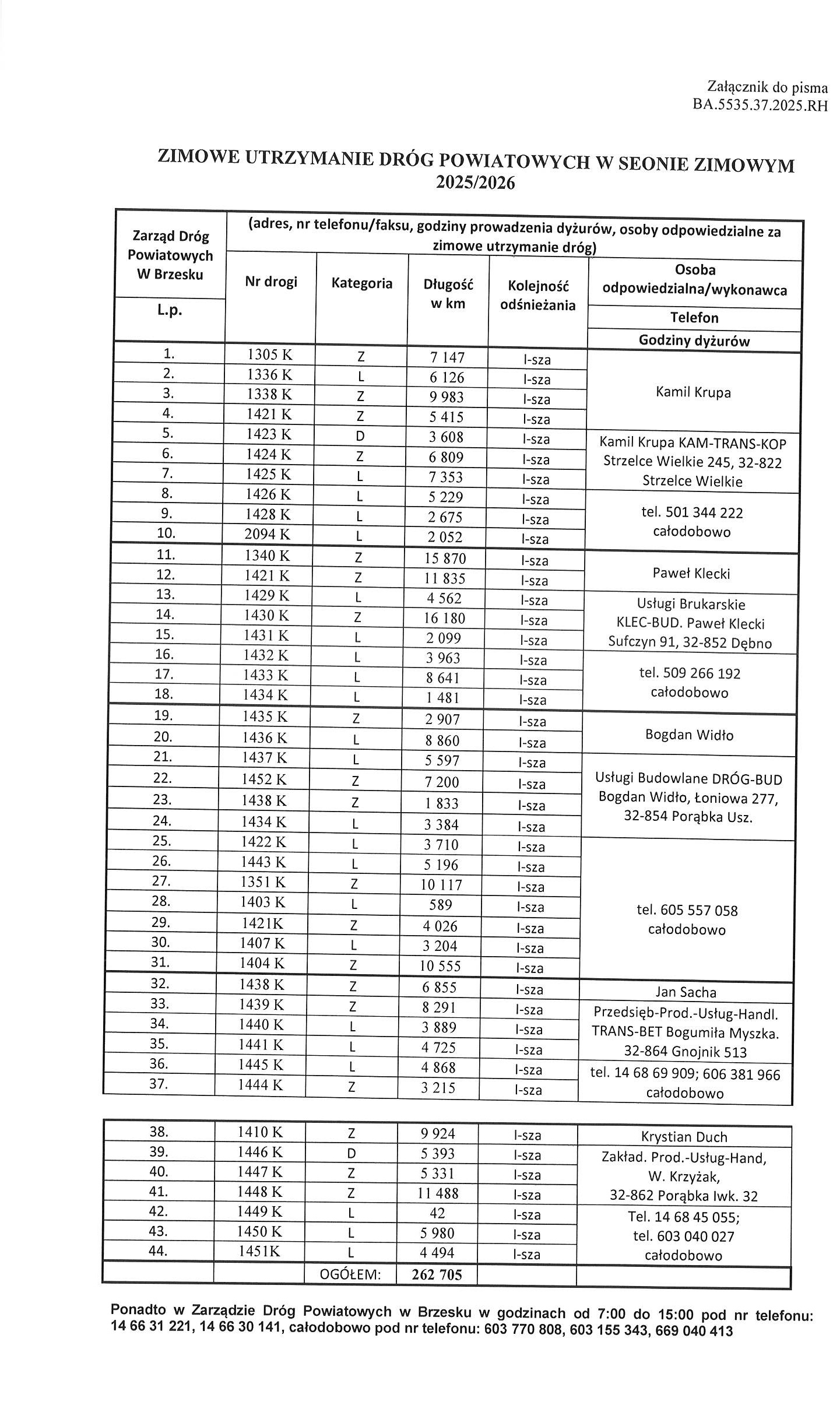 3. Zasady odśnieżania i usuwania gołoledzi na drogach powiatowych powiatu brzeskiego